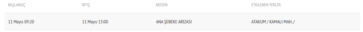 Atakum Kamalı Mahallesi: 09:20 ile 13:00 saatleri arasında ana şebeke arızası nedeniyle su kesintisi yaşanacak.