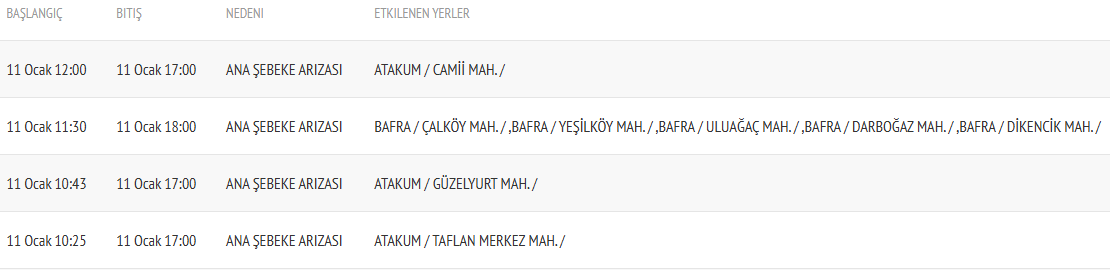 - Samsun/Atakum-Bafra, 11 Ocak 2026 Pazar: planlı su kesintileri uygulanacak.