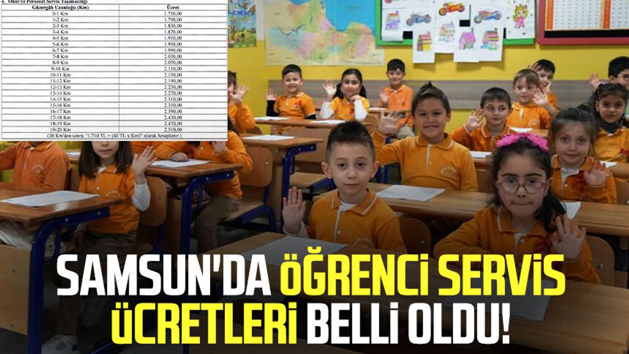 "Ücretler yalnızca Samsun Büyükşehir Belediyesi web sitesi ve mobil uygulamada yer alan modül ile hesaplanır. Ücretler aylıktır, gidiş-dönüş olarak hesaplanmıştır. Öğretim yılı boyunca resmi ve idari tatiller ücrete tabidir. Yarıyıl tatilinde ücret alınmaz. Haftada 5 günü geçen taşımalarda günlük ücret, günlük ücret = aylık ücret/22 formülü ile hesaplanır. Aynı serviste kardeş olması durumunda birinci çocuk tam ücretle; ikinci çocuk yüzde 10, üçüncü çocuk yüzde 20 indirimli taşınır. Taşıyıcı; taşınan öğrencinin ikamet değişikliği, okul değişikliği, okuma hakkını kaybetmesi, tedavisi uzun sürecek bir hastalığa yakalanması durumlarında, kalan günler için servis ücretini iade etmek zorundadır. Tarife günün her saati için geçerlidir. Ücretlere KDV dâhildir, herhangi bir sebep ile ek ücret talep edilemez. Rehber personel bulundurulması zorunlu olan servislerde, anaokulu ve ilkokul öğrencileri için azami yüzde 35 rehber ücreti tarife ücretine eklenir. (1km taşıma için rehber ücreti; 1.750 TL x yüzde 35 = 612,50 TL; Toplam ücret: 1750 TL + 612,50 TL = 2 bin 362,50 TL) Araç şoförünün, minibüslerin izleyecekleri güzergâhları ve alacakları ücretleri gösteren tarifeyi aracın ön camının sağ üst kısmına asması zorunludur."