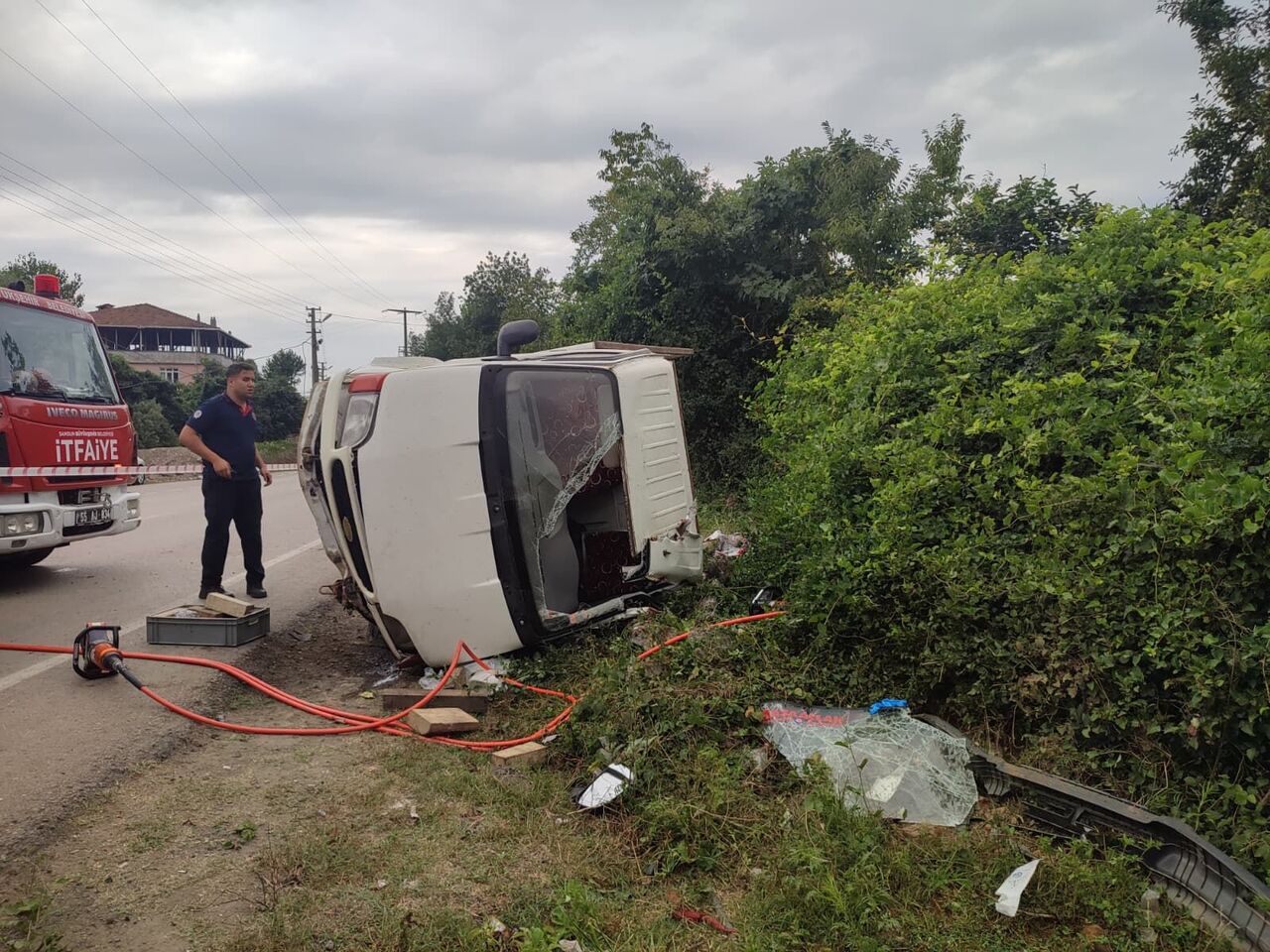 Ercan Şentaş (49) idaresindeki 55 KS 109 plakalı kamyonet, Hacılıçay Mahallesi'nde devrildi.