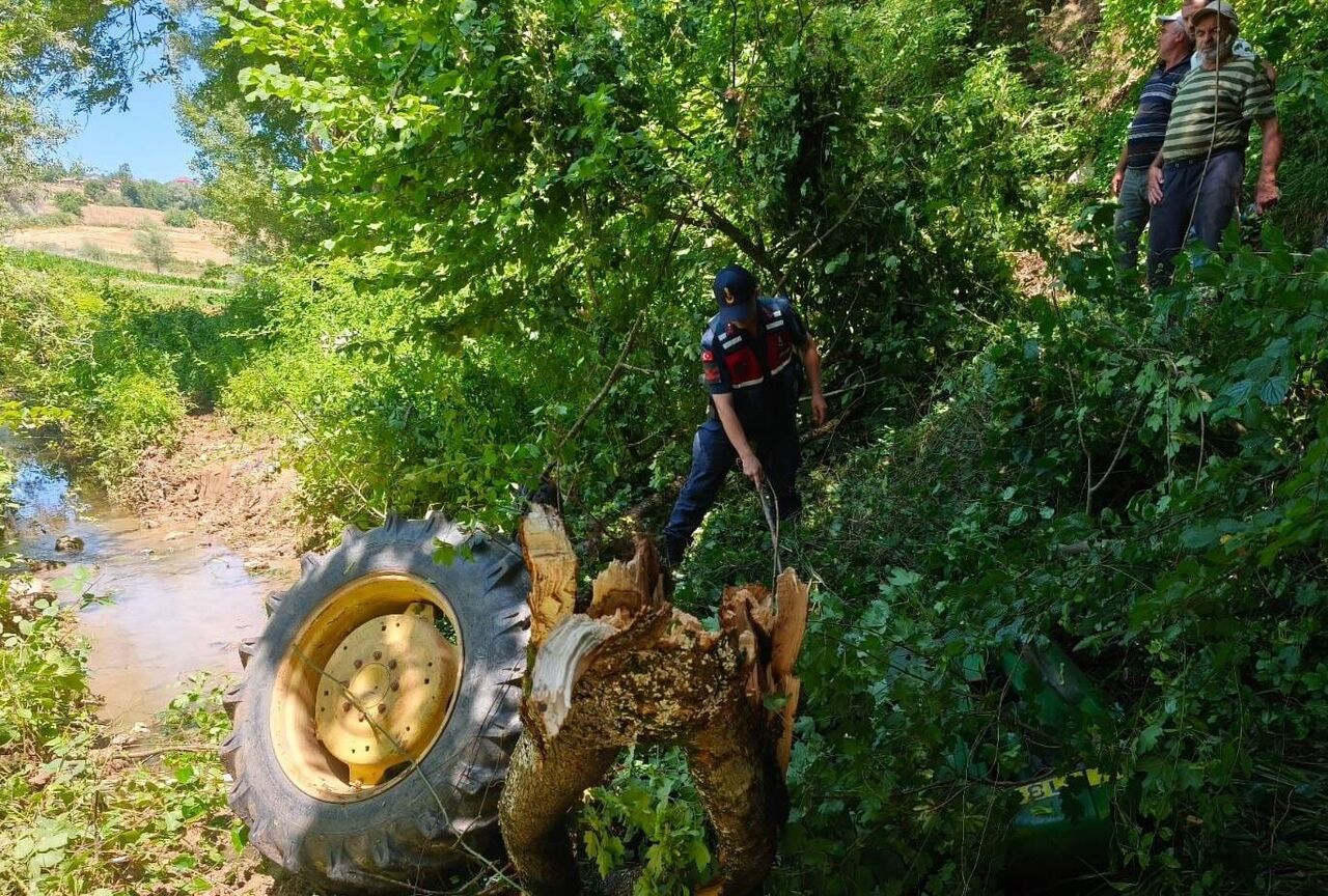Yakup İnan (76) idaresindeki traktör, Samsun'un Alaçam ilçesi Karahüseyinli Mahallesi'nde kontrolden çıkarak dere yatağına devrildi.