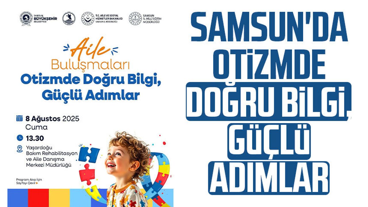 Samsun’da otizm konusunda toplumsal farkındalığı artırmak ve aileleri desteklemek amacıyla bugün önemli bir etkinlik hayata geçiriliyor. Samsun Büyükşehir Belediyesi öncülüğünde, Ondokuz Mayıs Üniversitesi, Aile ve Sosyal Hizmetler İl Müdürlüğü ile İl Milli Eğitim Müdürlüğü iş birliğiyle “Aile Buluşmaları: Otizmde Doğru Bilgi, Güçlü Adımlar” programı düzenlenecek.