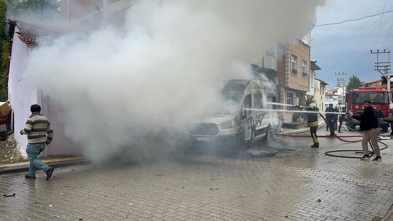 İHA kaynaklı haber: Şaban Gürbüz’e ait minibüs yanmaya başladı.