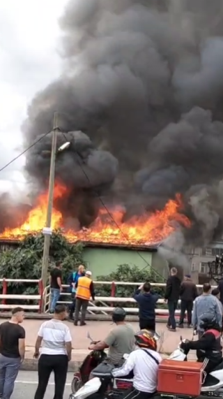 Yangın sırasında çevrede toplanan vatandaşlar korku dolu anlar yaşadı.