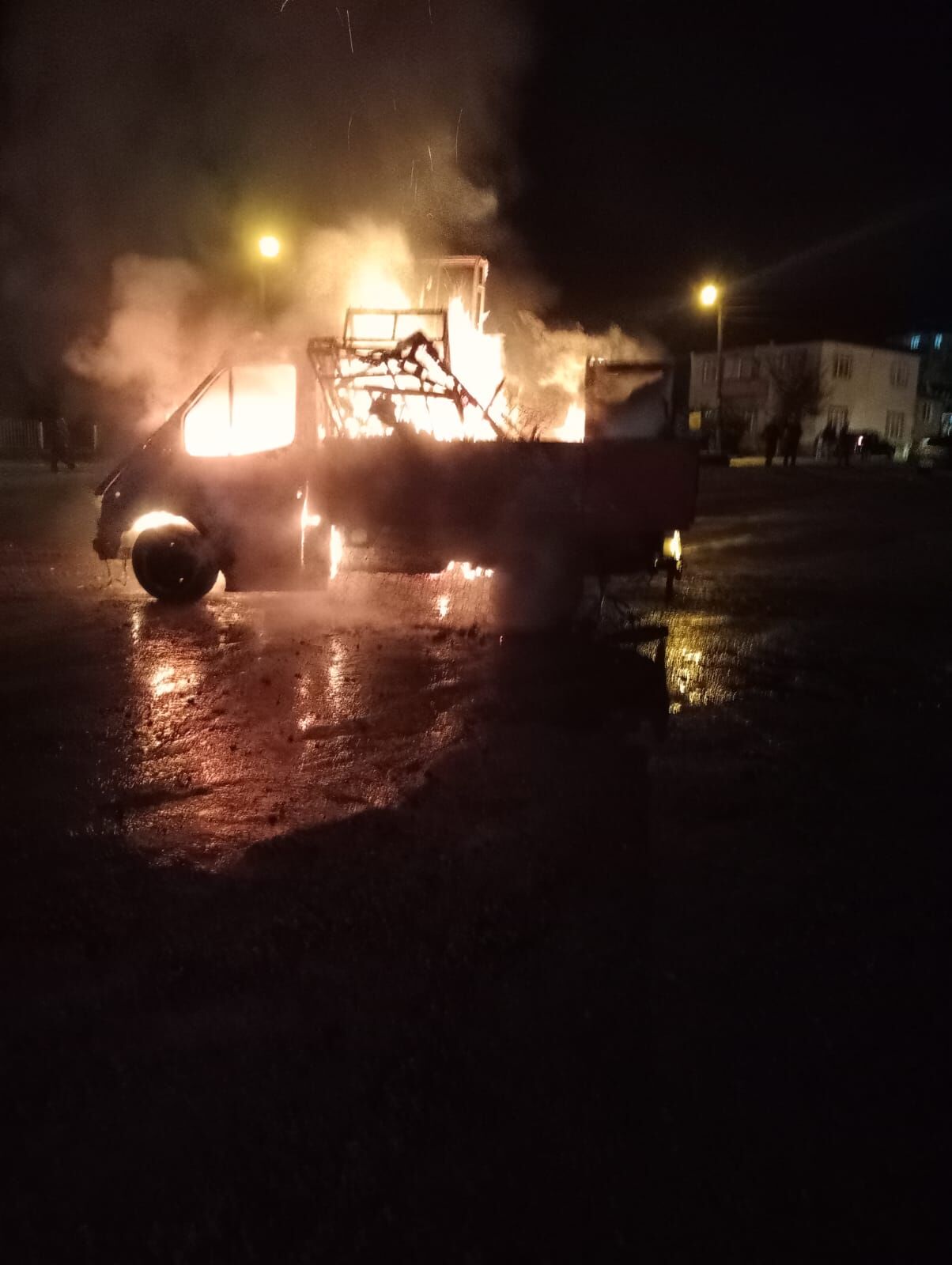 Alınan bilgiye göre, Samsun'un Tekkeköy ilçesi Aşağıçinik Mahallesi'nde park halindeki Y. K'ya ait kamyonette bilinmeyen bir sebeple yangın çıktı.