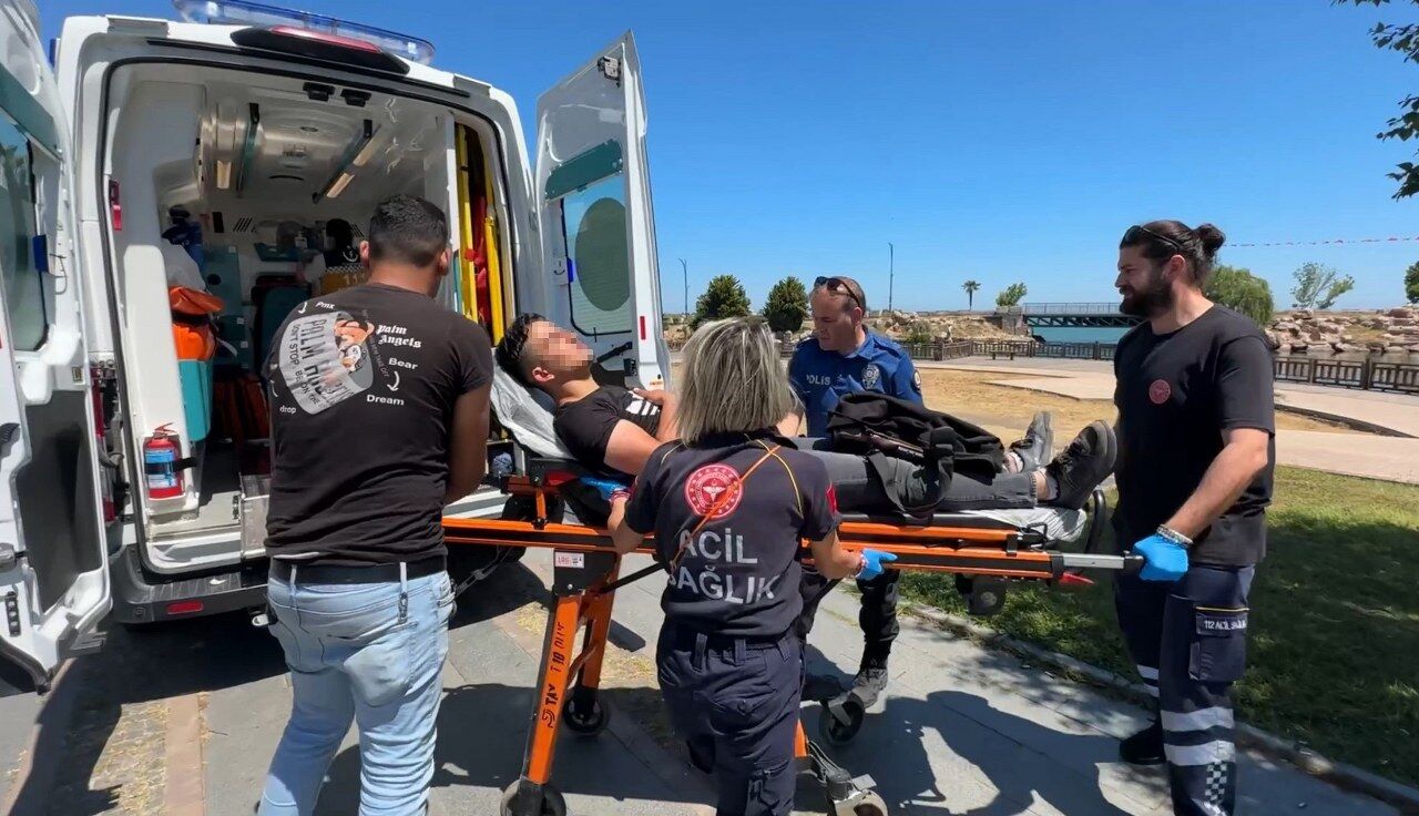 Sağlık ekipleri, baygın haldeki genci sedye ile ambulansa taşıdı. Ambulansta gözlerini açan genç, Gazi Devlet Hastanesi'ne kaldırıldı.