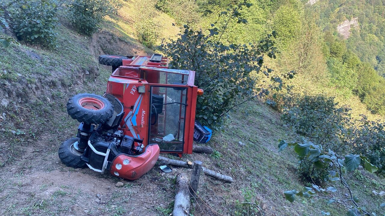 H.K'nin kullandığı pat-pat diye tabir edilen tarım aracı Fidancık mahallesi Sivritepe mevkiinde fındık bahçesinde kontrolden çıkarak devrildi.