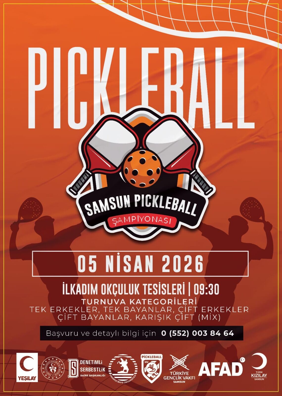 Turnuvaya katılmak isteyen sporcular, 0 (552) 003 84 64 numaralı telefon üzerinden veya “pickleballsamsun” Instagram hesabı aracılığıyla kayıt yaptırabilecek. Organizasyon, izlemek isteyen tüm sporseverlere açık olacak.