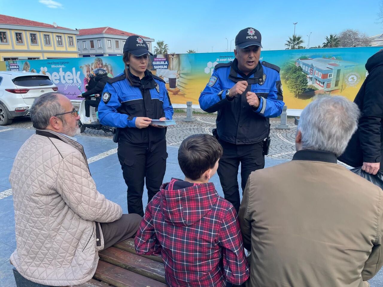 Samsun Emniyet Müdürlüğü Toplum Destekli Polislik Şube Müdürlüğü ekipleri, dolandırıcılık suçlarını önlemek ve vatandaşların farkındalığını artırmak amacıyla İlkadım ilçesi Saathane Meydanı’nda bilgilendirme etkinliği düzenledi. Etkinlikte, özellikle telefon ve internet dolandırıcılığı gibi sıkça karşılaşılan yöntemlere karşı vatandaşların nasıl tedbir alabileceği detaylı bir şekilde anlatıldı.