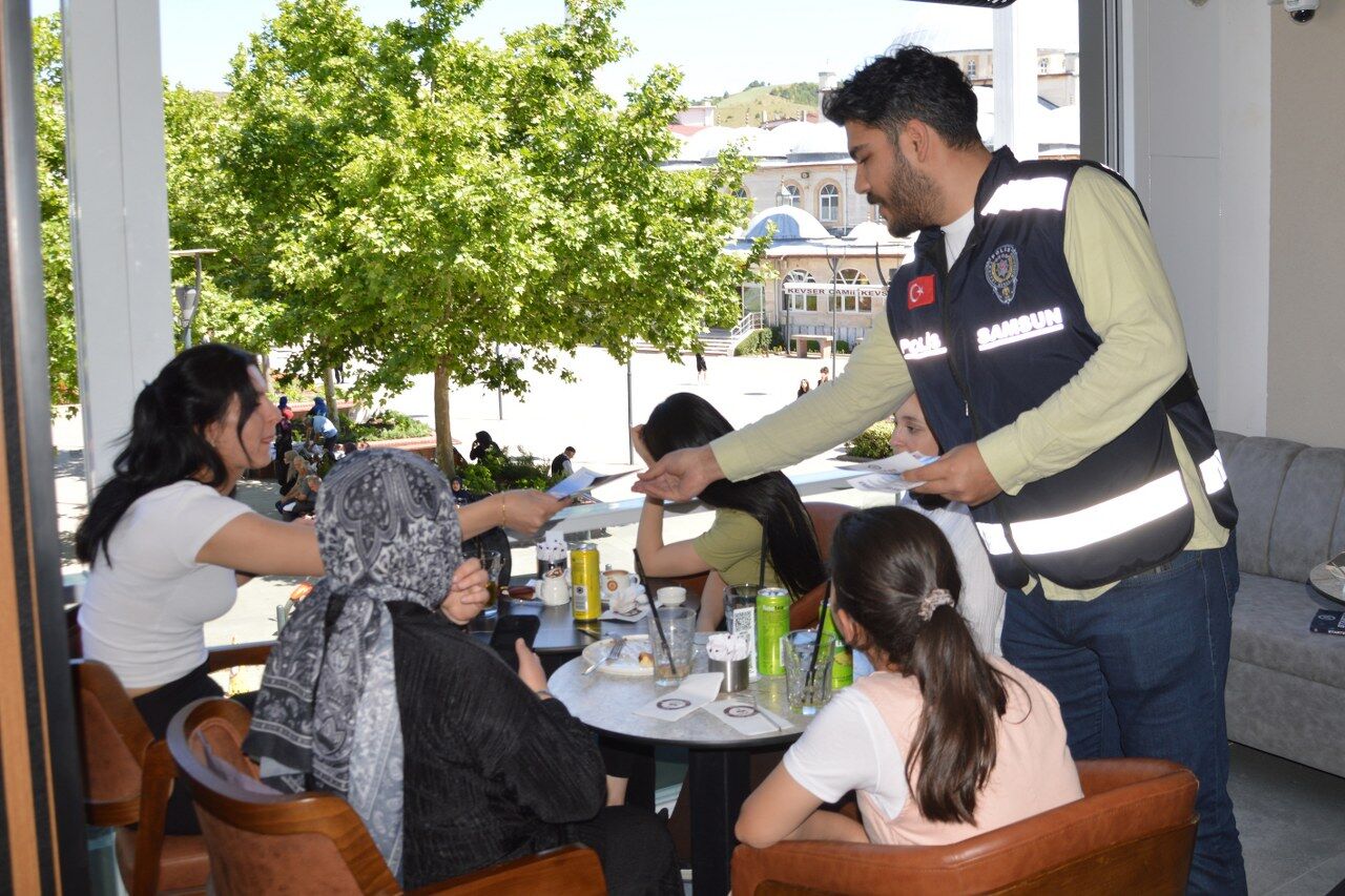 Polisler, Kevser Parkı, kafeler ve toplu taşıma durakları gibi bölgelerde gerçekleştirdikleri çalışmada alınabilecek tedbirler, dikkat edilmesi gerekenler ve boğulma tehlikesi anında yapılması gerekenler hakkında uyarıların bulunduğu broşür dağıttı.