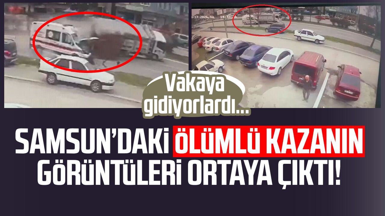 Samsun’un Çarşamba ilçesi Samsun-Ordu Karayolu’nda meydana gelen kazaya ait güvenlik kamerası görüntülerinde, vakaya gitmekte olan ambulansın orta şeritte ilerleyen fındık yüklü kamyona arkadan çarptığı görülüyor.