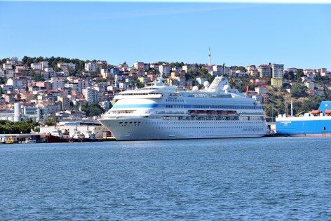 Samsun Limanı'na demirleyen gemideki 940 yolcu ile 435 kişilik mürettebat, liman görevlilerince karşılandı.