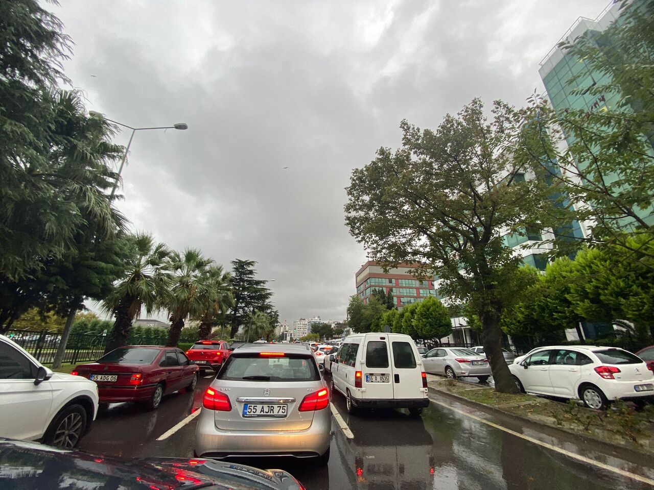 Samsun'un Atakum ve İlkadım ilçesinde etkili olan sağanak nedeniyle trafik yoğunlaştı, Atakum Cağaloğlu ve İlkadım Büyük Cami mevkisi civarında durma noktasına geldi.
