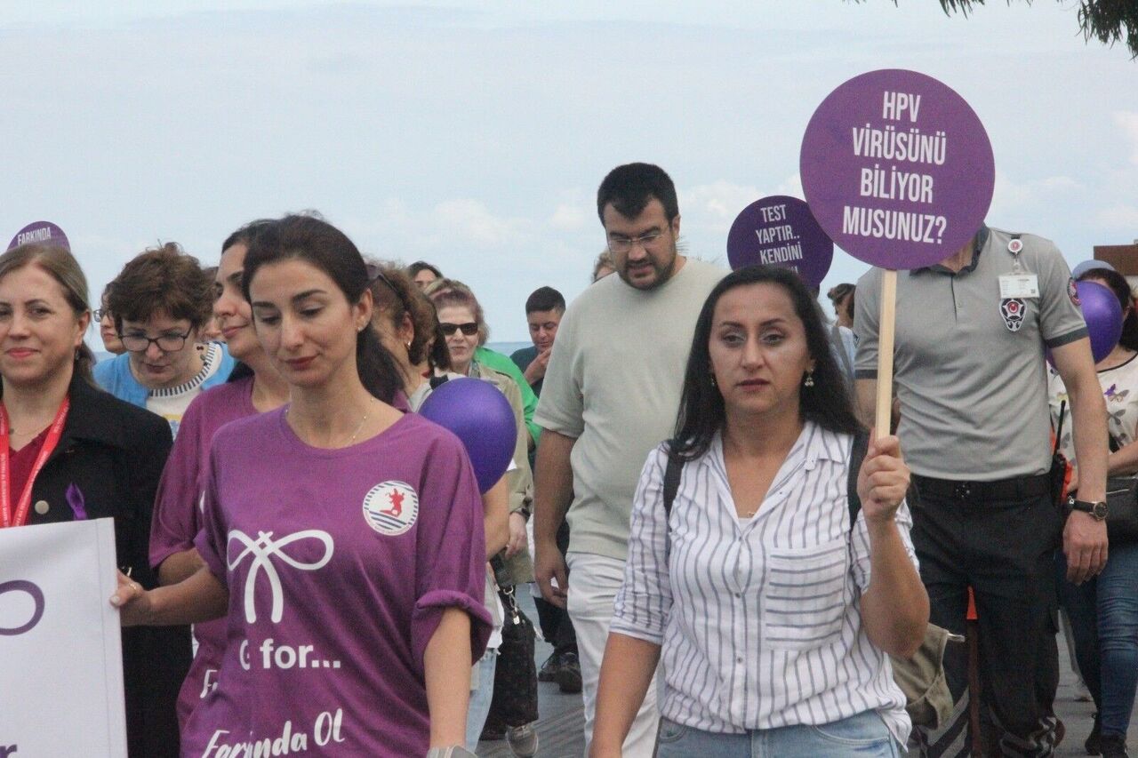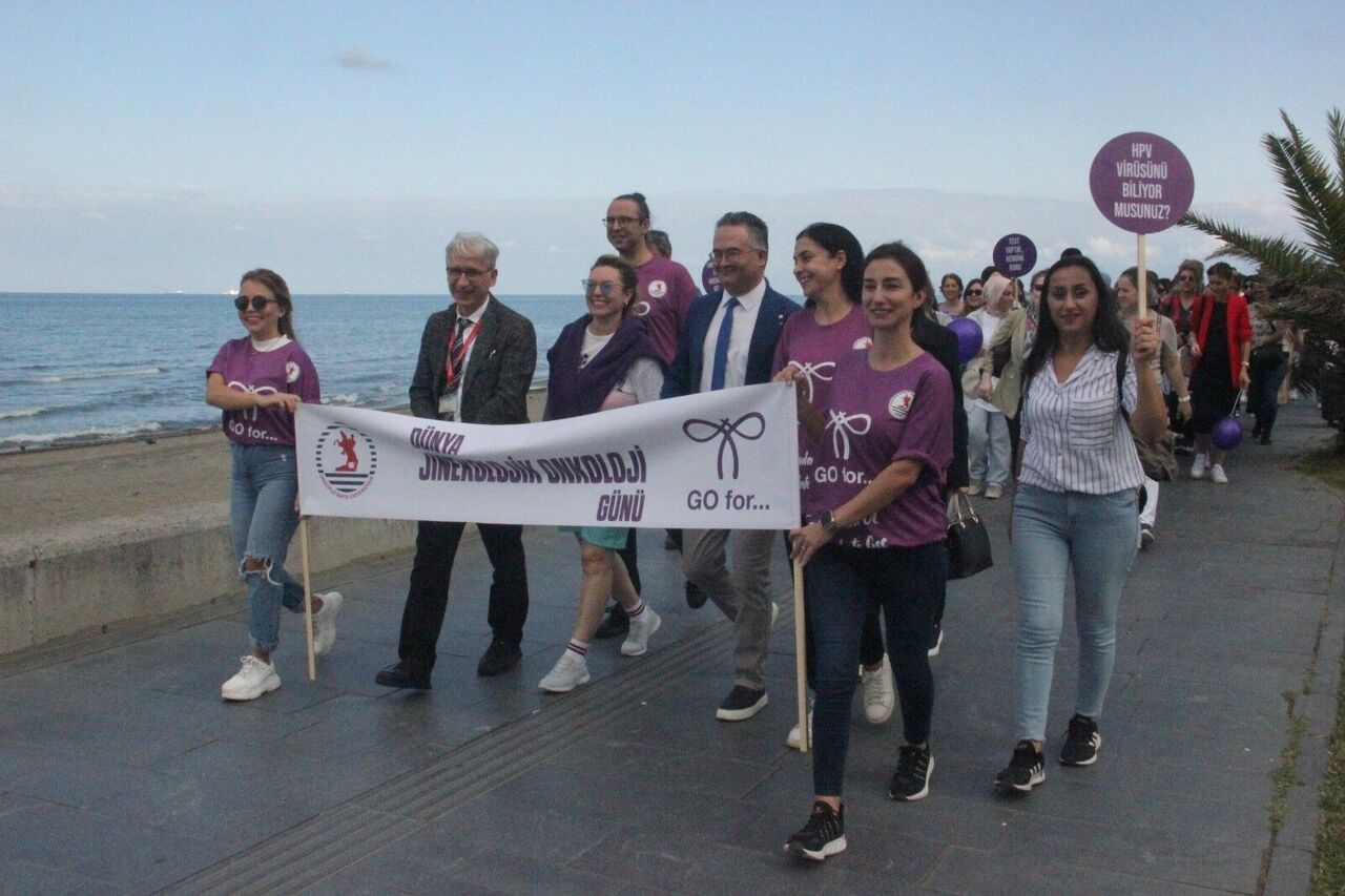 Dünya Jinekolojik Onkoloji Günü'nde farkındalık oluşturmak isteyen Ondokuz Mayıs Üniversitesinde (OMÜ) görevli doktor, hemşire, sağlık çalışanları ile jinekolojik kanser türlerini yenen hastalar birlikte yürüyüş yaptı.