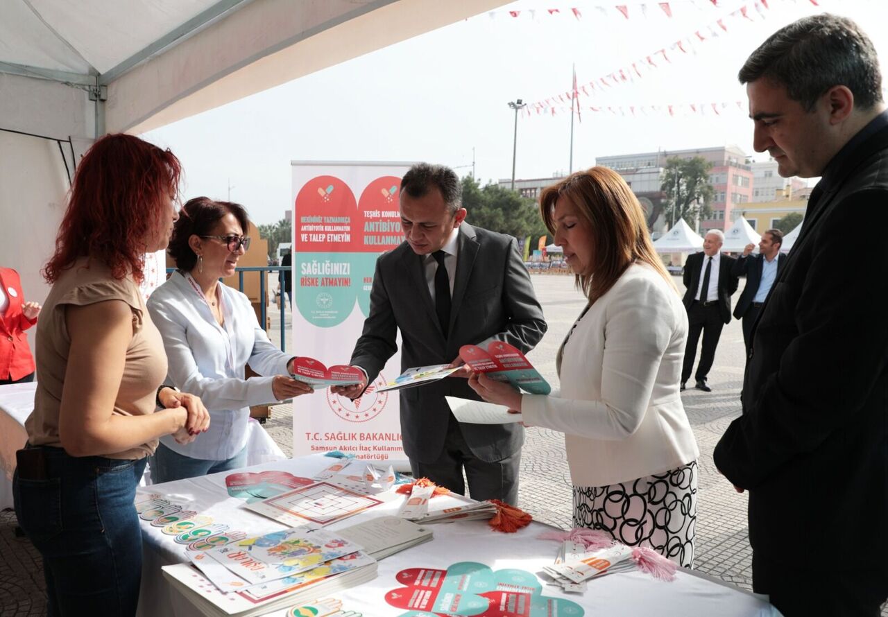 Samsun İl Sağlık Müdürlüğü'nün sosyal medya hesabından yapılan açıklamada şu ifadelere yer verildi: Sağlık Müdürümüz Uzm.Dr. Mustafa Uras, Cumhuriyetimizin 100. Yılı etkinlikleri kapsamında Valiliğimiz koordinesinde Cumhuriyet Meydanında açılan bilgilendirme ve tanıtım standımızı ziyaret ederek çalışmalar hakkında Halk Sağlığı Hizmetleri Başkanımız Dr.Hatice Öz'den bilgi aldı. 29 Ekim Pazar gününe kadar Cumhuriyet Meydanında açık olacak standımızda vatandaşlarımıza kanser taramaları, akılcı ilaç ve antibiyotik kullanımı ve emzirmenin önemi hakkında ekiplerimiz tarafından bilgi verilecektir."
