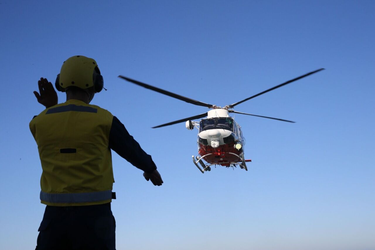 Sahil güvenlik helikopterinden atlayan dalgıç, sudan çıkardığı bir kazazedeyi vinç operasyonu ile helikoptere çıkardı. Helikopterdeki ekipler, TCSG DOST korvetine getirdiği yaralıyı, sağlık ekiplerine teslim etti.
