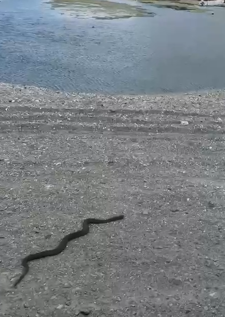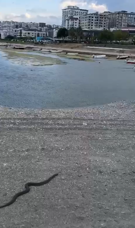 Samsun’un Atakum ilçesinde bulunan Körfez Marina sahilinde yürüyüş yapan vatandaşlar, yerde sürünen bir yılanla karşılaşınca kısa süreli panik yaşadı.