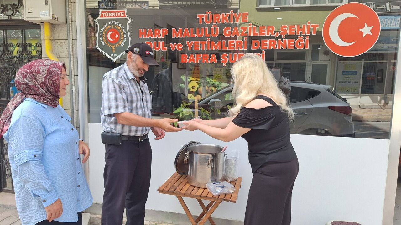 Dernek binası önünde şehit aileleri ve gazi yakınlarıyla, vatandaşlara aşure ikramında bulunuldu.