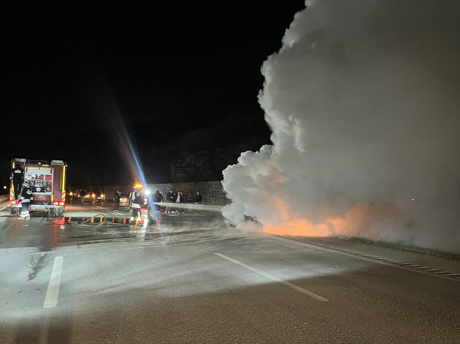 Araçtaki yangın, ekiplerin müdahalesiyle kontrol altına alınarak söndürüldü.