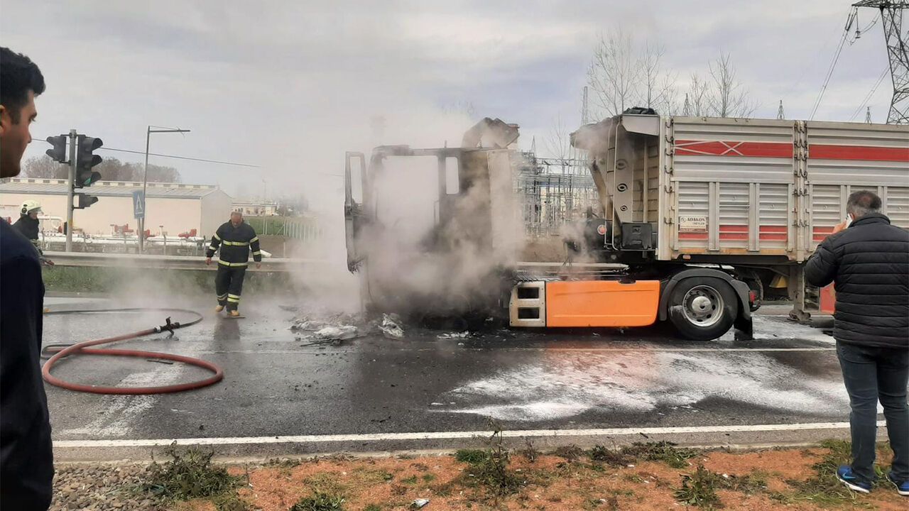 Edinilen bilgilere göre olay, Akçay Mahallesi’nde meydana geldi. U.Y. idaresindeki 60 AAC 054 plakalı tırın seyir halindeyken motor bölümünde yangın çıktı.