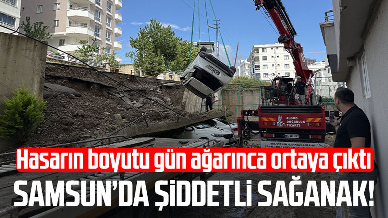 Gece saatlerinde sağanağın etkili olduğu Samsun'un Atakum ilçesi Alanlı Mahallesi'ndeki bir sitenin otoparkında bulunan istinat duvarı çöktü.