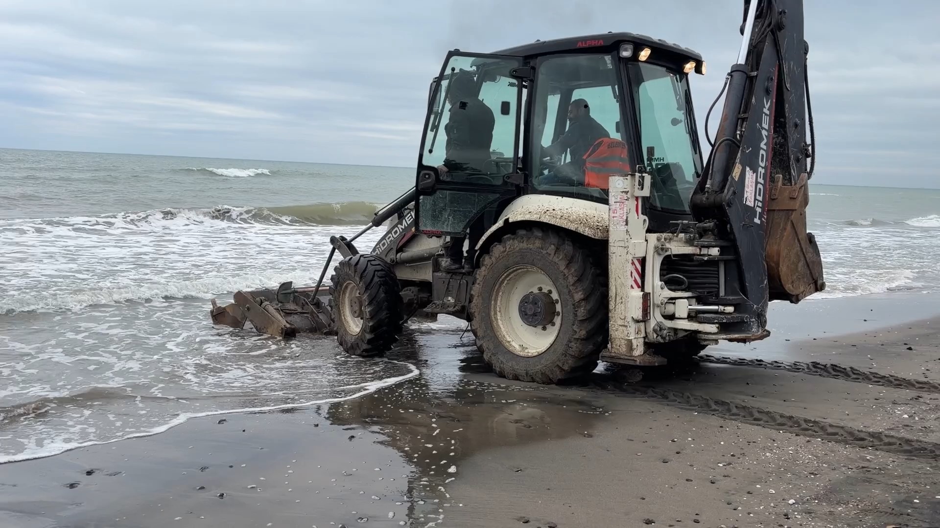 - Denize atılan çuvallardan inşaat atıkları kepçeyle çıkarılarak temizlendi.