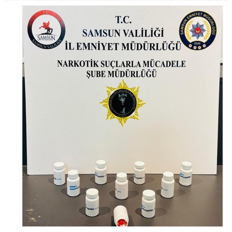 Edinilen bilgilere göre, Samsun Emniyet Müdürlüğü Narkotik Suçlarla Mücadele Şube Müdürlüğü ekipleri, ilçede yaptıkları kontroller sırasında durumundan şüphelendikleri C.Ç. (31) isimli şahsı durdurdu. Şahsın üzerinde yapılan aramada 336 adet sentetik ecza bulundu.