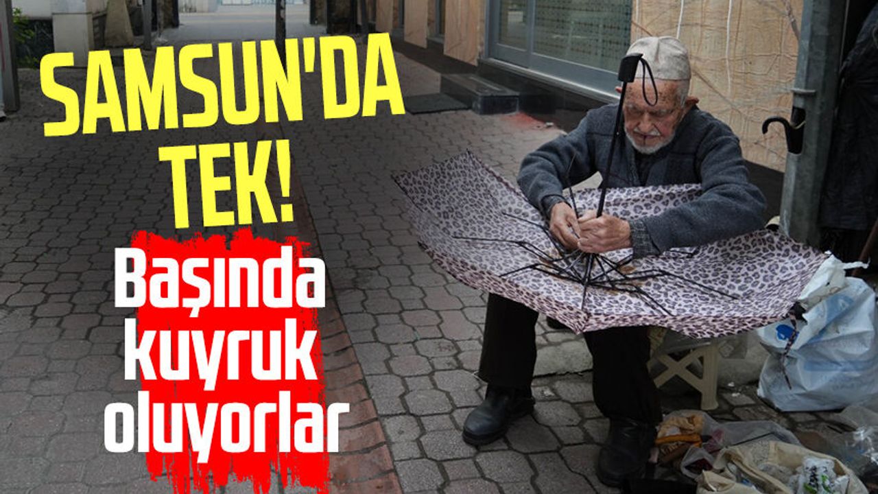 Samsun'da vatandaşlar, Türkiye'nin en yaşlı, şehrin ise tek şemsiye tamircisi olan 95 yaşındaki Dursun Yıldız'ın başında kendilerine sıra gelmesi için kuyrukta bekliyorlar.