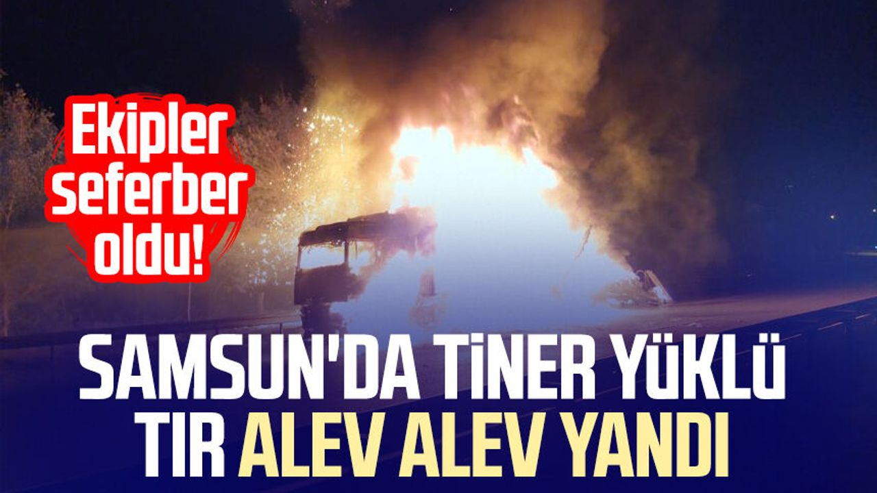 Samsun'un Atakum ilçesi Samsun Ankara kara yolu Sarıışık mevkisinde tiner yüklü bir tırda seyir halindeyken yangın çıktı.