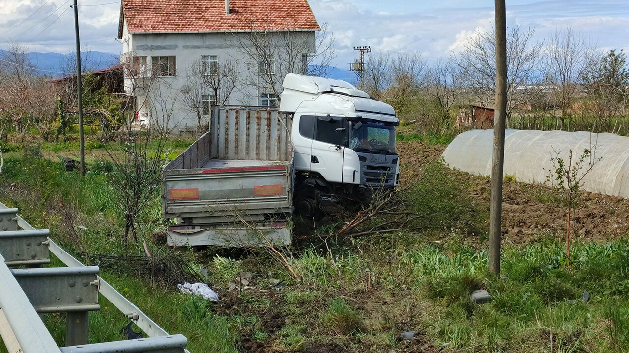 Kontrolden çıkan 55 FH 869 plakalı tır, önce bariyerlere çarptı ardından yoldan çıkarak tarlaya savruldu. Kazanın şiddetiyle araçta maddi hasar meydana geldi.
