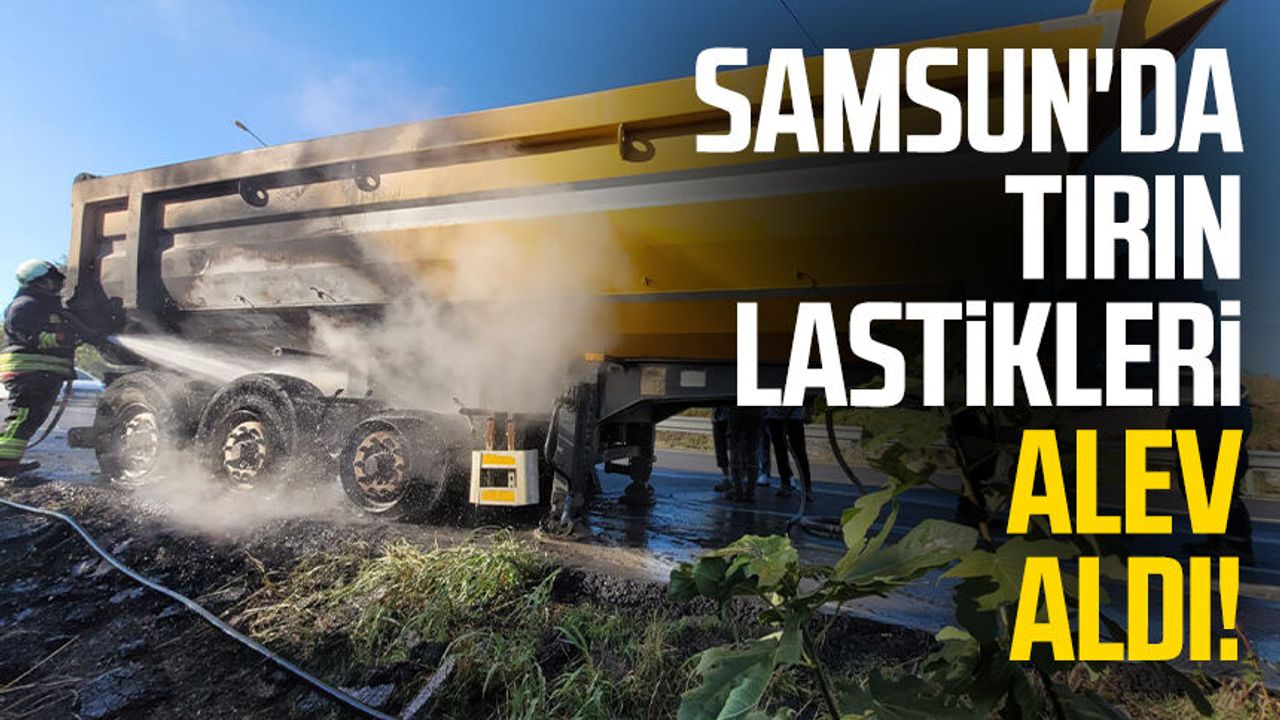 İbrahim K. (48) yönetimindeki plakası öğrenilemeyen tırın dorsesinin lastikleri, Samsun-Sinop kara yolu Elifli Sapağı'nda alev aldı.
