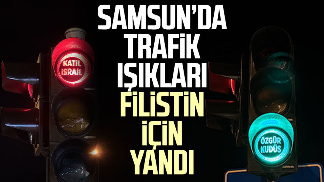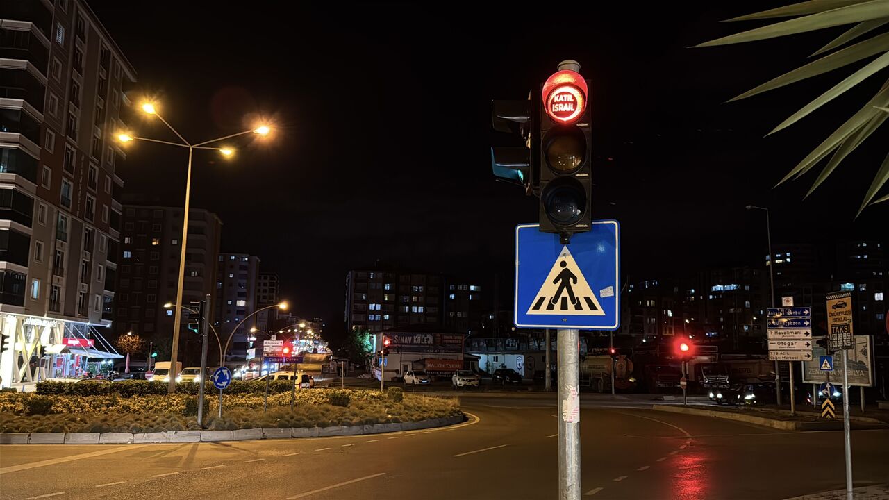 Merkez Atakum ilçesindeki trafik sinyalizasyon sistemindeki ışıklara "Katil İsrail" ve "Özgür Kudüs" yazıları yerleştirildi.