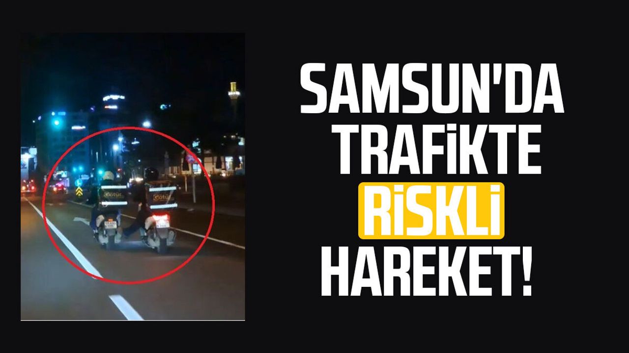 Sepetlerinde "Götür" yazan motosikletlilerin bu kontrolsüz hareketi ise trafik güvenliğini tehlikeye attı.
