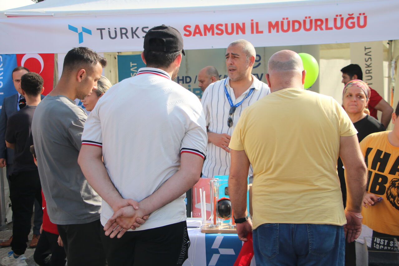 TÜRKSAT Samsun İl Müdürlüğü'nün, Cumhuriyet'in 100. yılı dolayısıyla Cumhuriyet Meydanı'nda açtıkları stant vatandaşlardan yoğun ilgi gördü. Vatandaşlara son teknolojik hizmetlerin ve kampanyaların tanıtıldığı stantta çocuklara da balon hediye edildi.