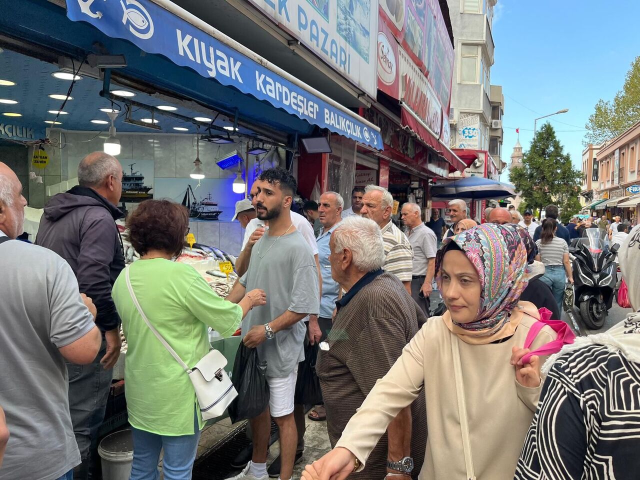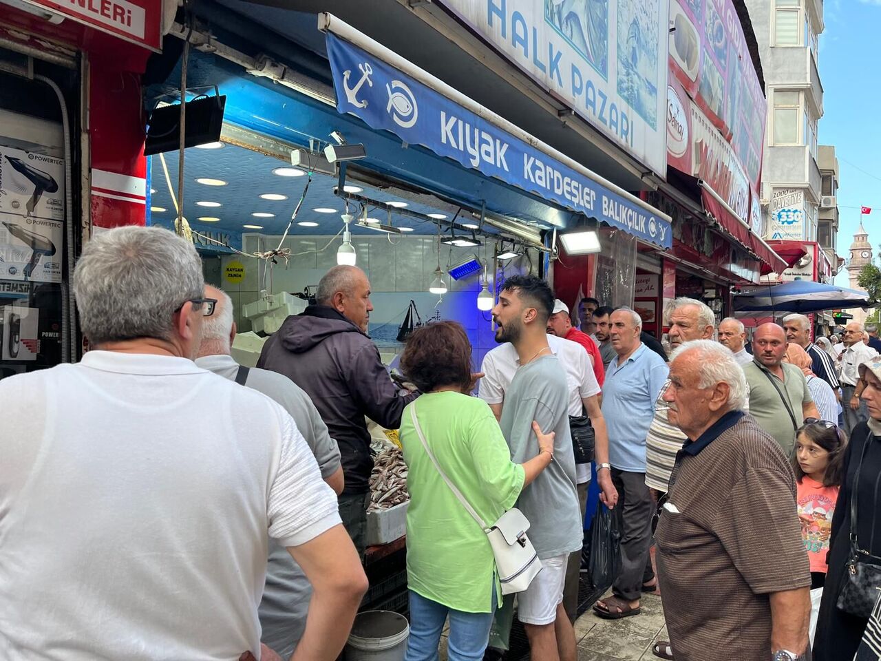 Balık avı sezonun açılmasından sonra Samsun'da balıkçı tezgahlarının önünde oluşan kalabalıklar dikkat çekti.