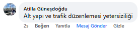 Birçok vatandaş, şehirdeki alt yapı eksikliklerinin de trafiği olumsuz etkilediğini dile getirdi. Atilla Güneşdoğdu, "Alt yapı ve trafik düzenlemesi yetersiz," derken, Erol Samsunlu ise "Yapılan akıllı kavşak hataları, bu kavşaklar yapıldıktan sonra daha çok trafik oldu. Yönetim hatası, bilinçsizlik ve tecrübesizlik," diyerek tepki gösterdi.