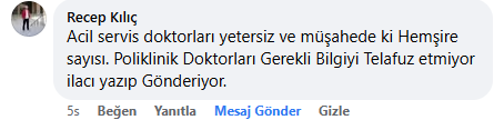 Recep Kılıç, Samsun’daki hastanelerle ilgili eleştirilerini paylaştı ve özellikle acil servis doktorlarının yetersiz olduğuna dikkat çekti. Kılıç, hemşire sayısının da yetersiz olduğunu belirterek, poliklinik doktorlarının hastalarına gerekli bilgi vermediğini ve yalnızca ilaç yazıp gönderdiklerini ifade etti.