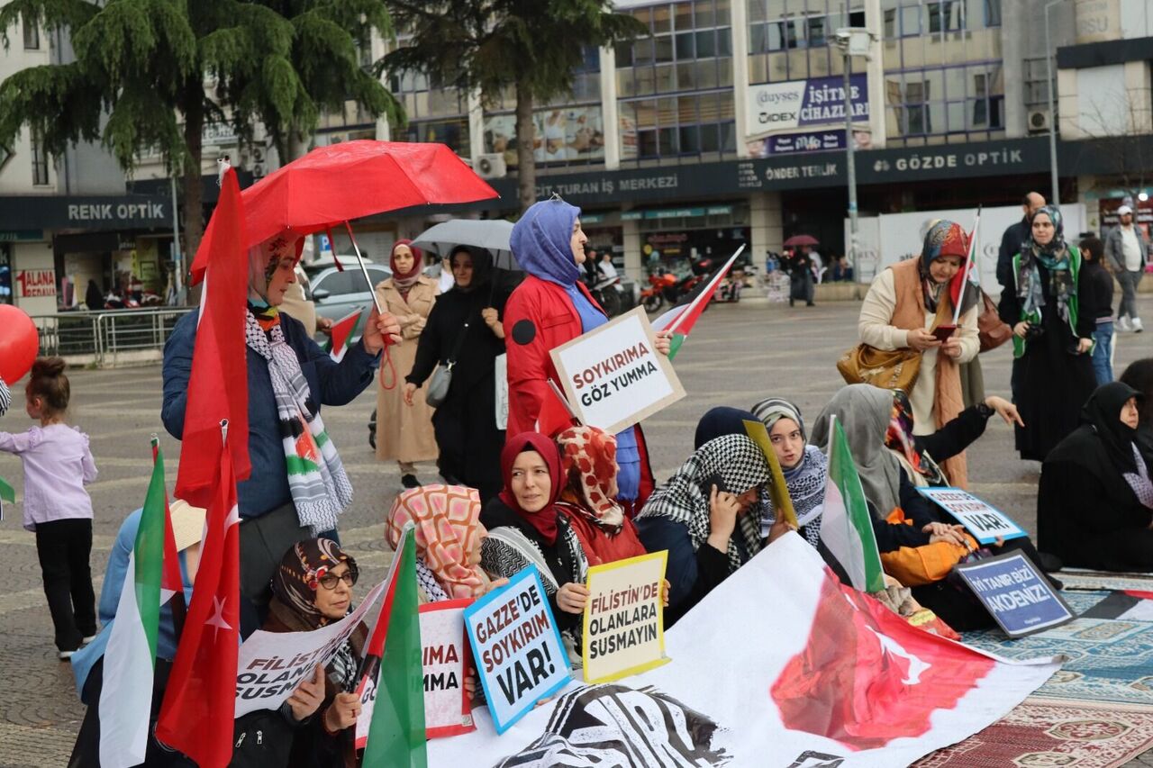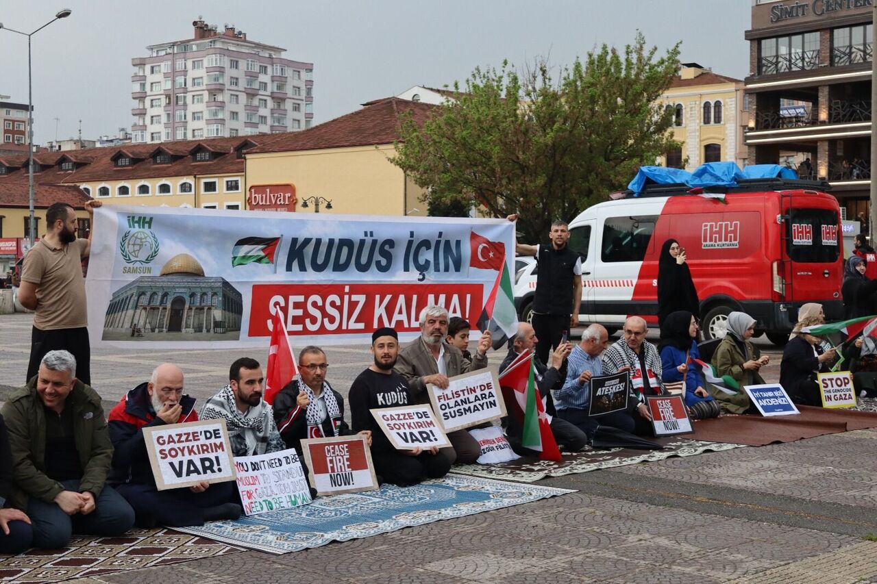 Cumhuriyet Meydanı’nda İHH İnsani Yardım Vakfı Samsun Şubesi öncülüğünde, İsrail'in Gazze'deki soykırımına tepki göstermek amacıyla çok sayıda vatandaş 'Kudüs için sessiz kalma', 'Gazze'de soykırım var', 'Filistin'de olanlara susmayın' pankart ve dövizleriyle sessiz oturma eylemi yaptı.