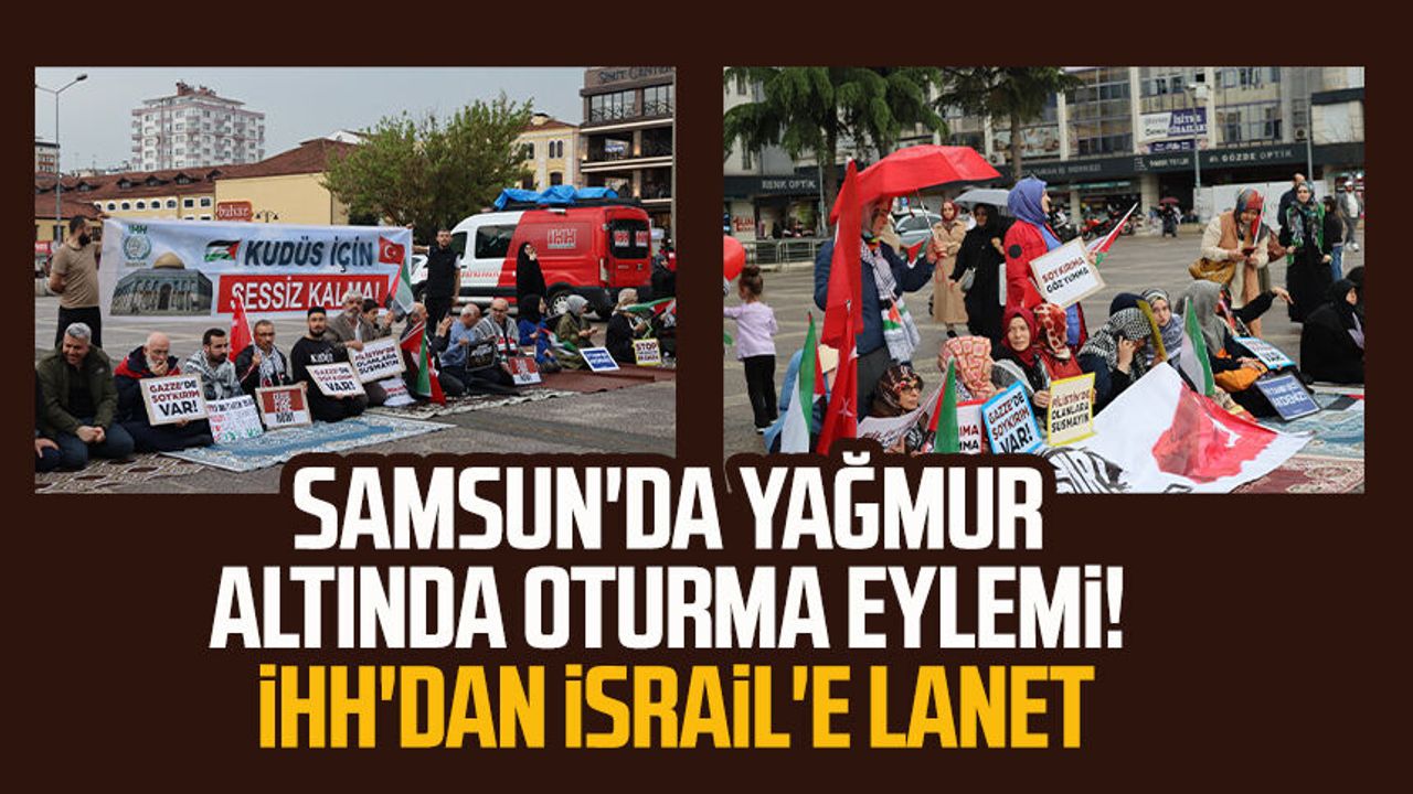 Samsun'da İHH İnsani Yardım Vakfı,İsrail'in Gazze'deki saldırılarına tepki göstermek amacıyla oturma eylemi gerçekleştirdi. Yağmura rağmen vatandaşlar, İsrail'e lanet yağdırarak, Filistinlilerin yanlarında olduklarının mesajını verdi.