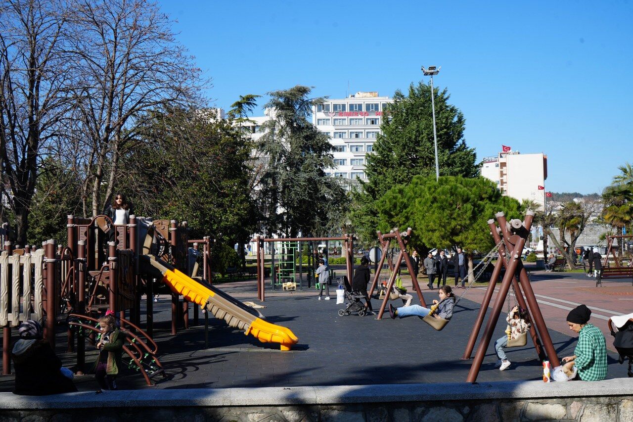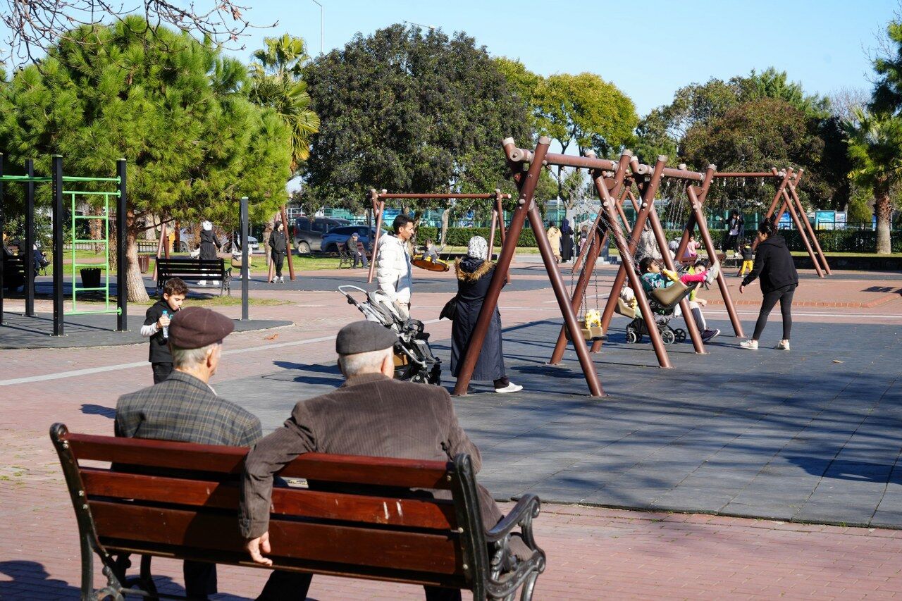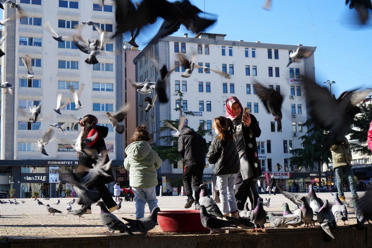 Yaşlılar banklarda oturup D vitamini depolarken, okulların tatil olması nedeniyle çocuklar da parklarda oynayıp, güvercinlere yem verdi.