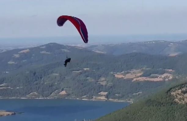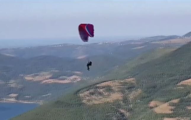 Paraşütçünün havada yaşadığı zor anlar bir vatandaş tarafından cep telefonu kamerasıyla kaydedildi.