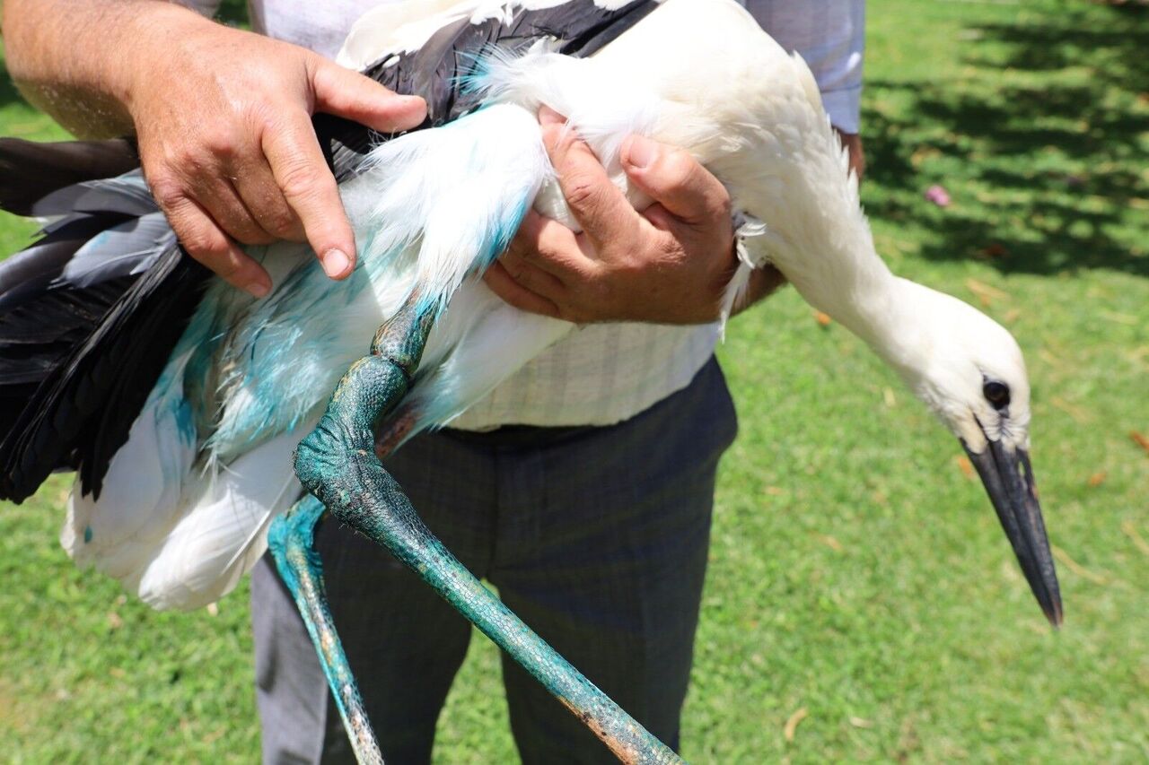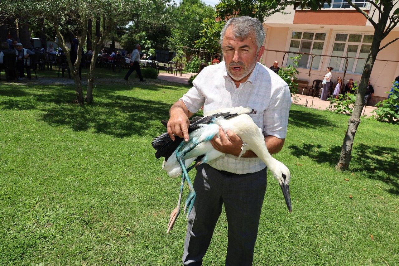 Yaralı leylek, Doğa Koruma ve Milli Parklar Müdürlüğü ekiplerine teslim edilecek.