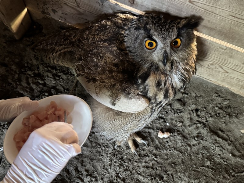 Puhuların doğadaki en büyük baykuşlardan olduğunu belirten İsfendiyaroğlu, "Hızlı bir şekilde puhunun kendini toparlaması için kanadını bandaja aldık. Yaklaşık 1 aylık tedavi süreci olacak. 6 kilogram ağırlığında puhumuz, doğada kendisi beslendiği için bizim verdiğimiz yiyecekleri bir yemek olarak görmüyor çünkü koku duyuları çok gelişkin değil. Biz de onu elimizle günlük olarak besliyoruz." dedi.
