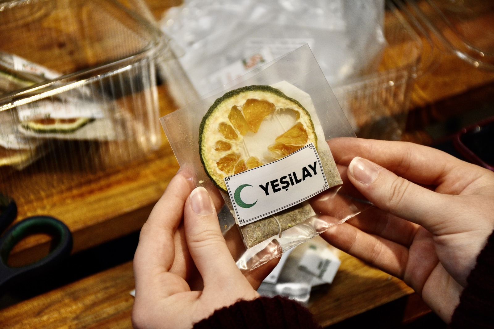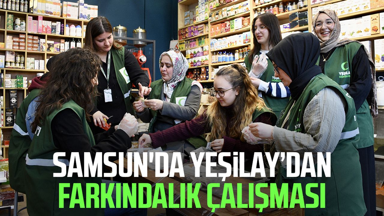 Samsun'un İlkadım ilçesindeki bir aktarda Yeşilayın kadın komisyonu ile gönüllülerin katılımıyla "Yeşilay" yazılı kış çayı paketleri hazırlandı.