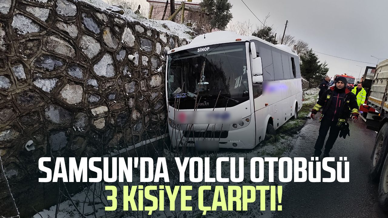 Sinop-Samsun kara yolunda plakası ve sürücüsü öğrenilemeyen yolcu otobüsü, Karaköy mevkisinde meydana gelen hasarlı trafik kazası nedeniyle araç dışında bekleyen 3 kişiye çarptı.