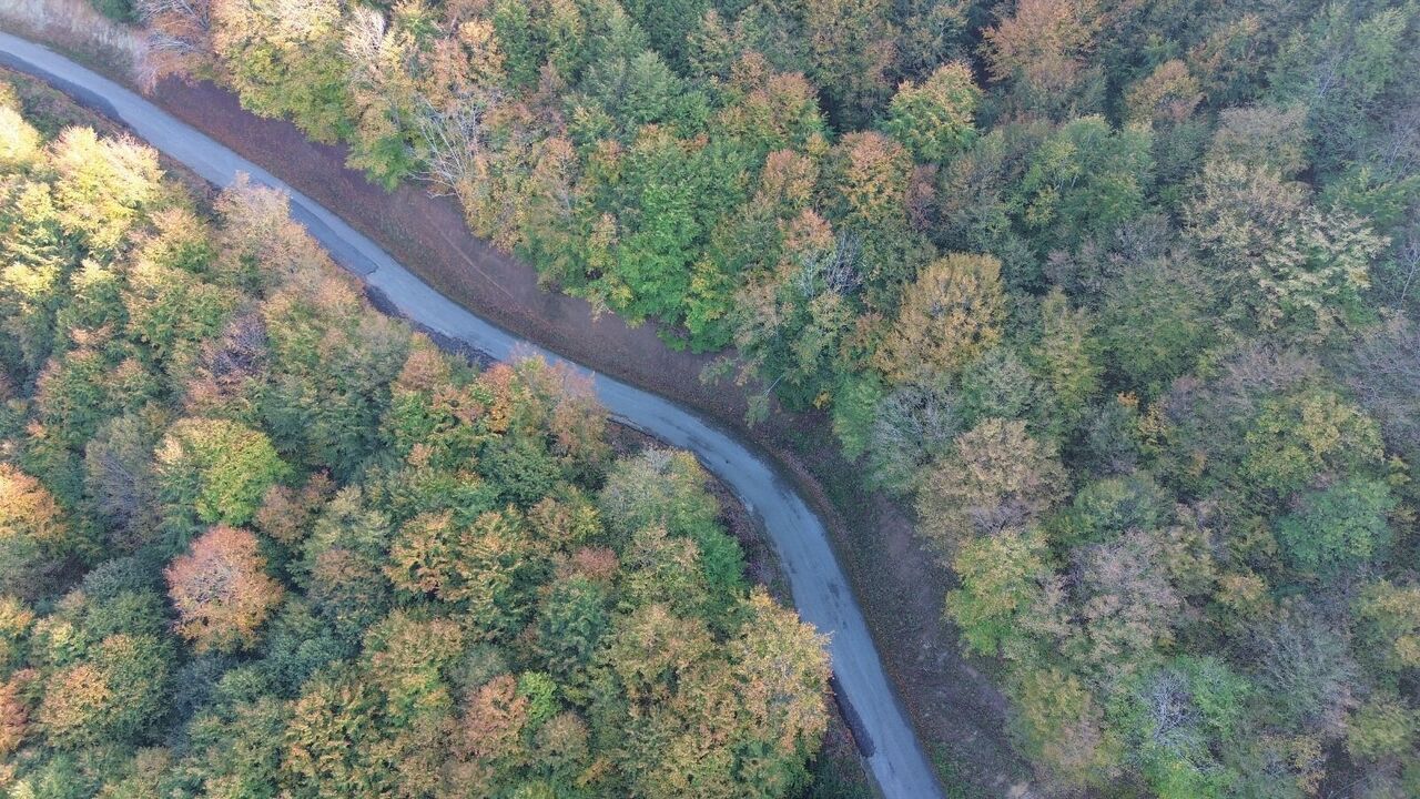 Sonbaharda ziyaretçilerine huzurlu bir atmosfer sunan Yunt Dağı ve çevresindeki doğal güzellikler, dronla da görüntülendi.