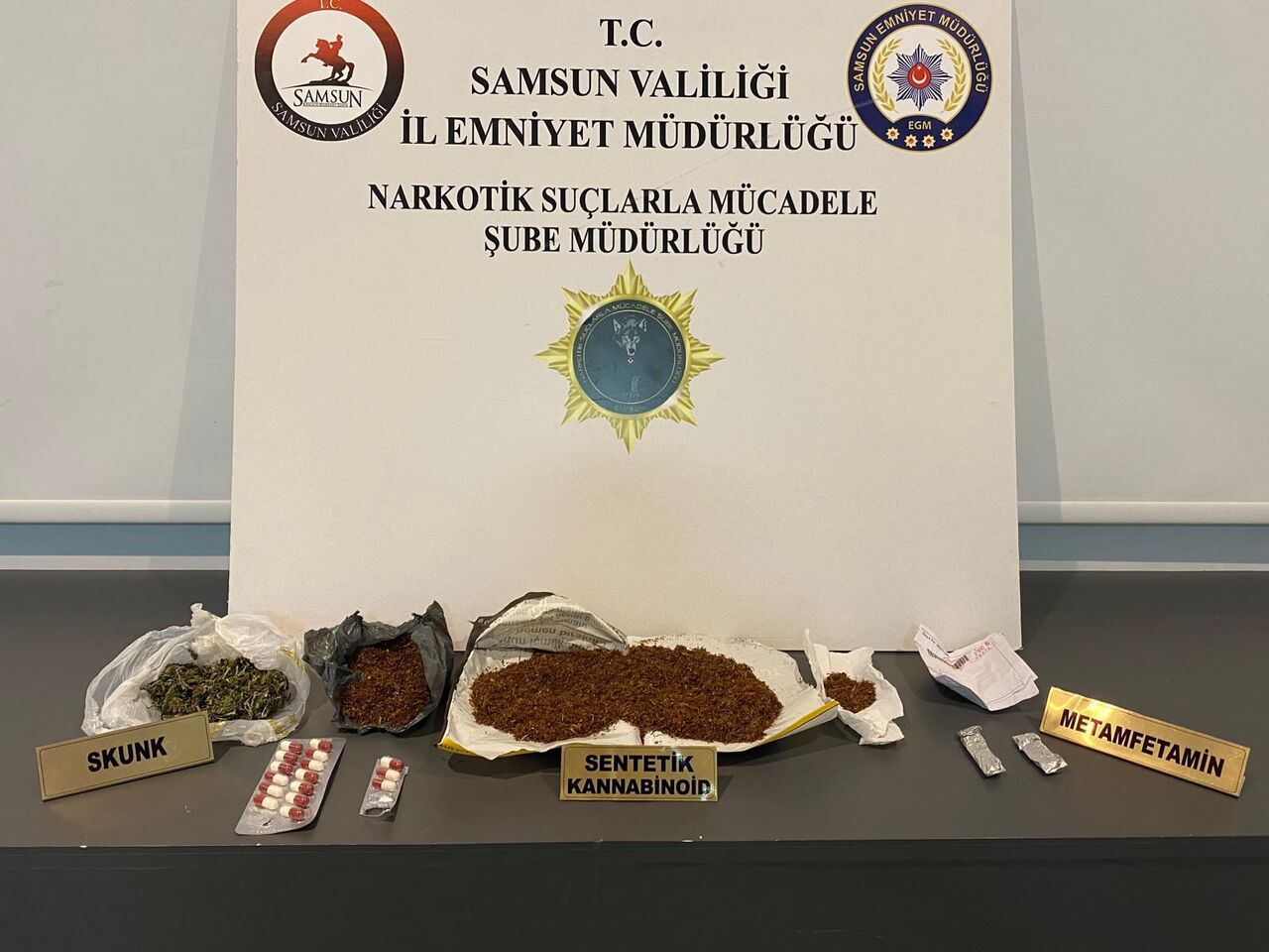 Ele geçirilen maddeler şöyle açıklandı: 114,52 gram sentetik kannabinoid (bonzai), 5,17 gram metamfetamin, 22,38 gram esrar, 17 adet sentetik ecza.