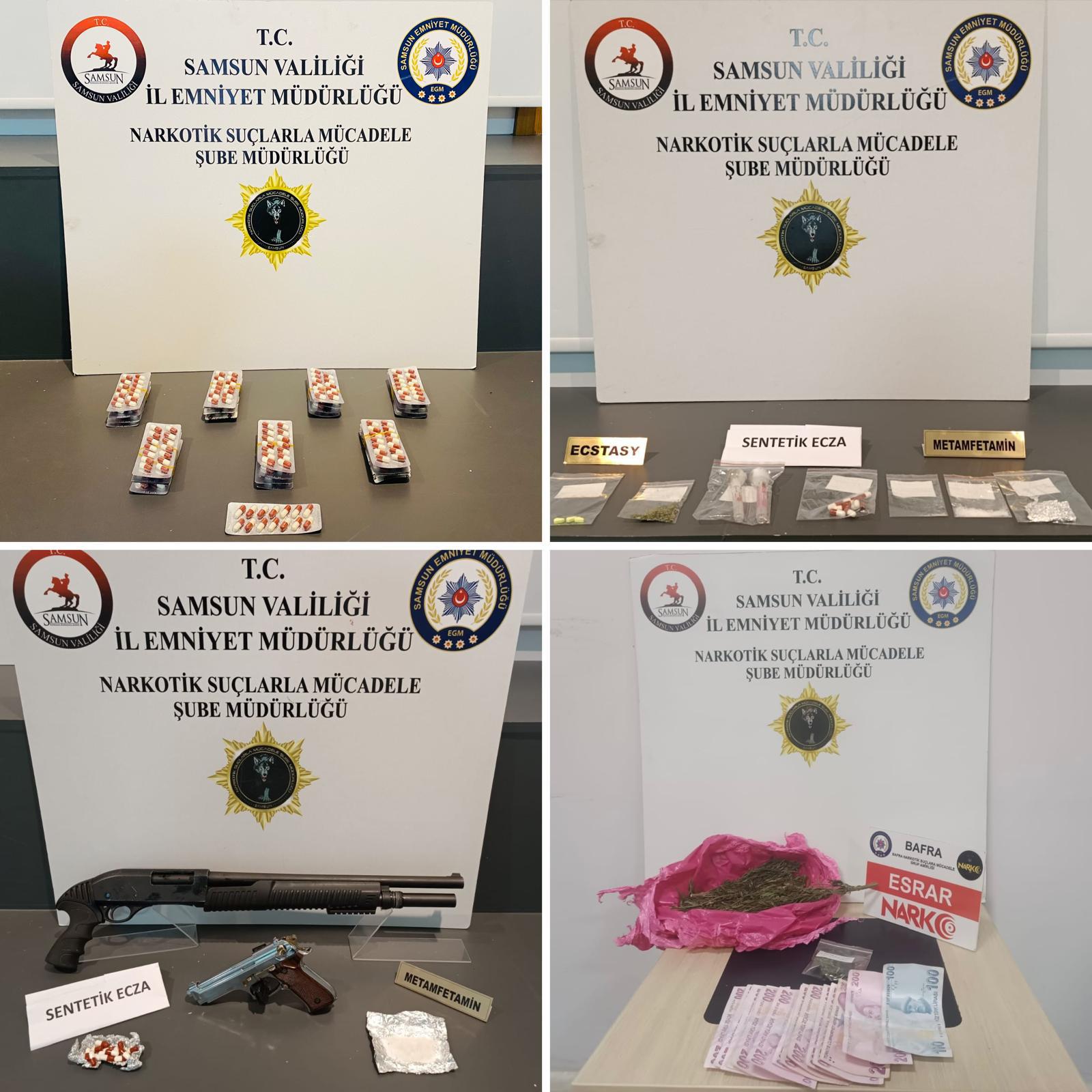 İl Emniyet Müdürlüğü Narkotik Suçlarla Mücadele Şubesi ekiplerince, İlkadım, Atakum, Tekkeköy ve Bafra ilçelerinde belirlenen adreslere operasyon düzenlendi.