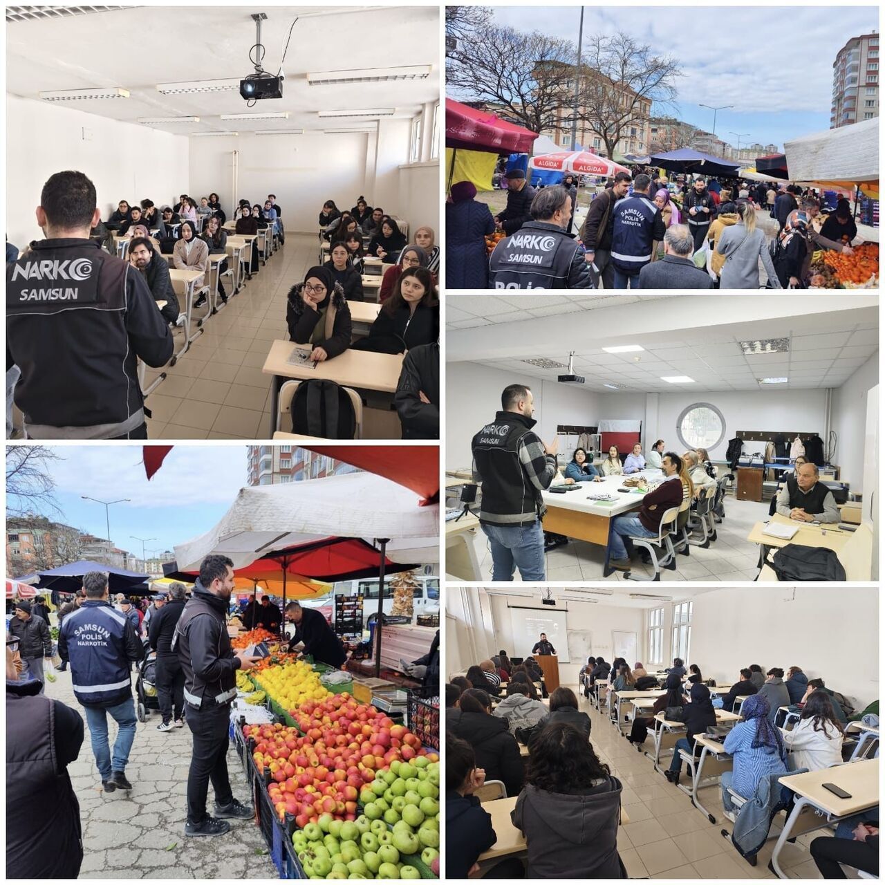Atakum ilçesinde yapılan eğitim faaliyetleri kapsamında; Ondokuz Mayıs Üniversitesi Eczacılık Fakültesi konferans salonunda 95 öğrenciye, Ondokuz Mayıs Üniversitesi Yabancı Diller Meslek Yüksekokulu konferans salonunda 375 öğrenciye, Atakent Mahallesi Halk Eğitim Merkezi kursiyerlerinden 12 kişiye, Mimar Sinan Mahallesi Halk Eğitim Merkezi yabancı dil kursu kursiyerlerinden 15 kişiye, Mimar Sinan Mahallesi halk pazarında esnaf ve vatandaşlardan bin 100 kişiye NARKO-GENÇLİK, NARKO-ANNE ve NARKO-NOKTA faaliyetleri kapsamında bilgilendirme yapıldı. Eğitimlerde, UYUMA uygulaması ve NARVAS sisteminin önemi anlatılarak, vatandaşların uyuşturucuyla mücadeleye aktif katılım sağlamalarının önemi vurgulandı.