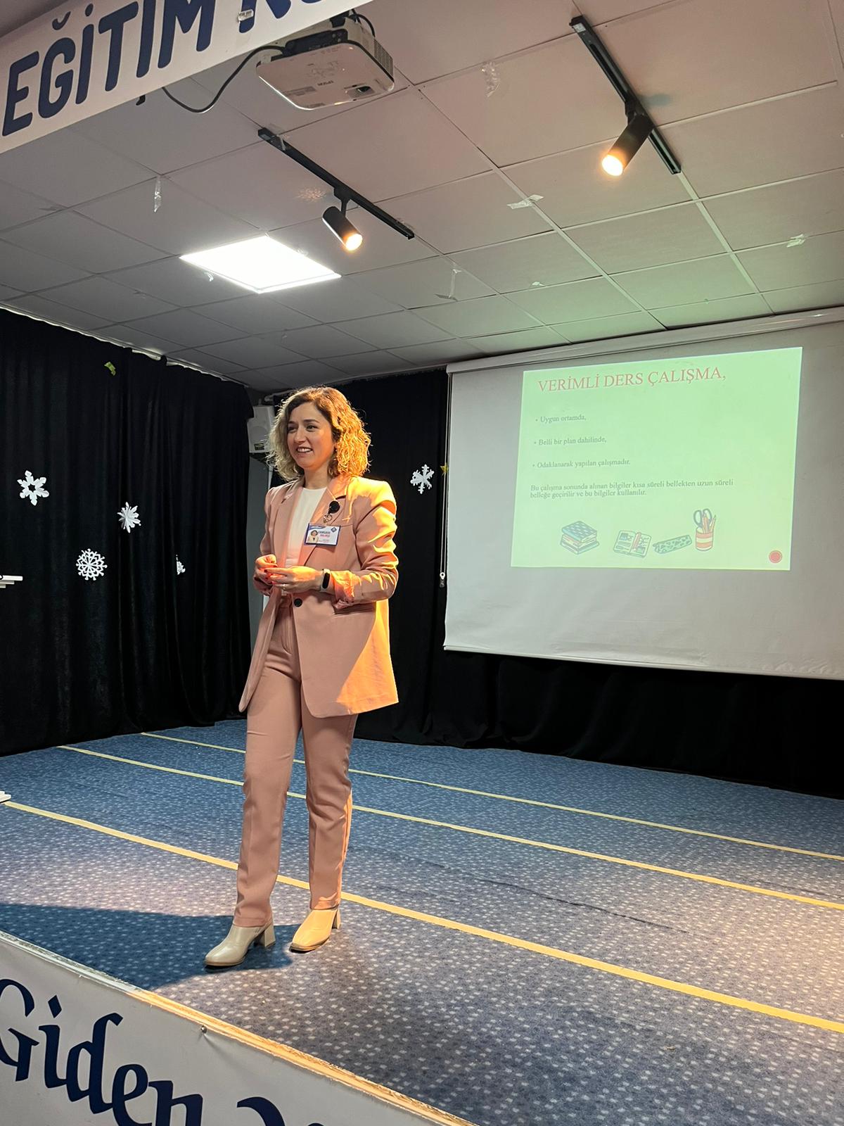 Öğrenciler sınav sırasındayken, Zorlu Koleji Ortaokulu Müdürü Cansade Balıkçı velilere okulu tanıtarak, merak edilen soruları cevapladı. Klinik Psikolog Buse Pehlivan da verimli ders çalışma teknikleriyle ilgili seminer verdi.